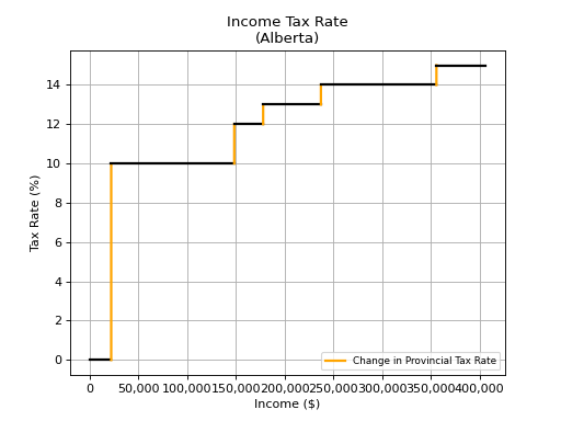 Alberta provincial tax rates are below in chart and tables formats. You can use the form below to select a tax year and optionally combine the federal tax rates with the provincial tax rates. The Basic Personal Amount for the tax types you select will be included by default.