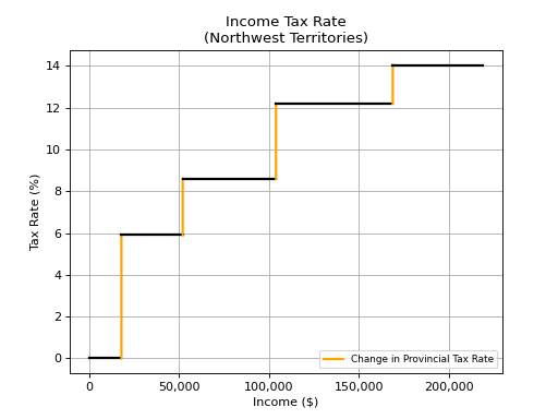 Northwest Territories tax rates are below in chart and tables formats. You can use the form below to select a tax year and optionally combine the federal tax rates with the provincial tax rates. The Basic Personal Amount for the tax types you select will be included by default.