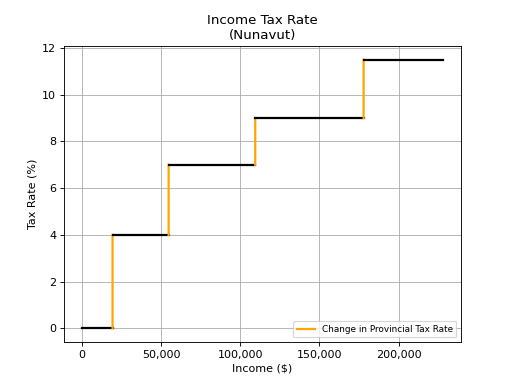 Nunavut tax rates are below in chart and tables formats. You can use the form below to select a tax year and optionally combine the federal tax rates with the provincial tax rates. The Basic Personal Amount for the tax types you select will be included by default.