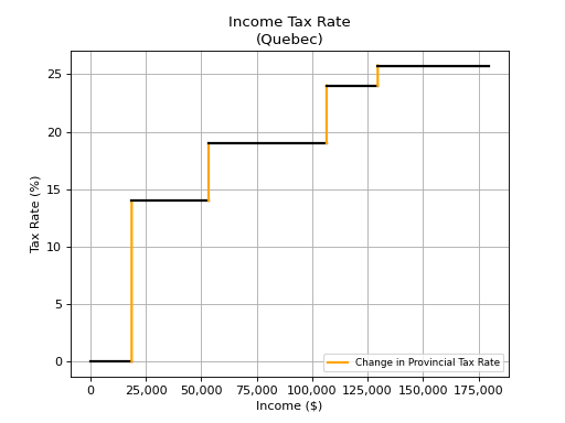 | $129,590 and above | 25.8% | Provincial Tax => Change in rate (+1.8%) |