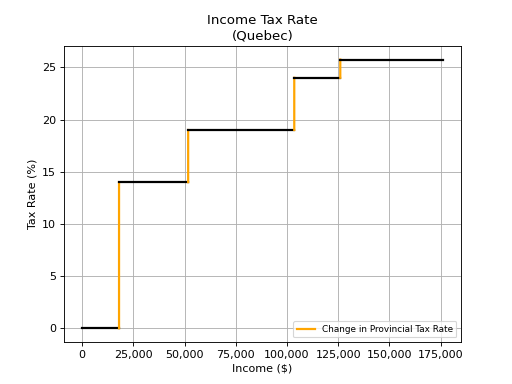 | $126,000 and above | 25.8% | Provincial Tax => Change in rate (+1.8%) |